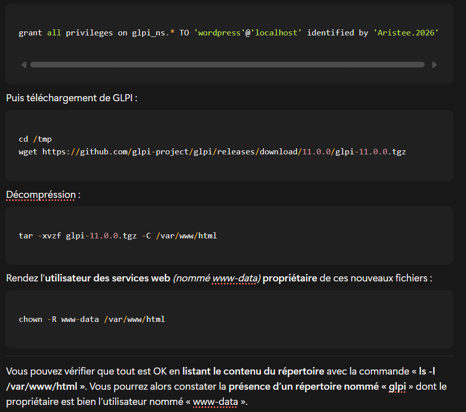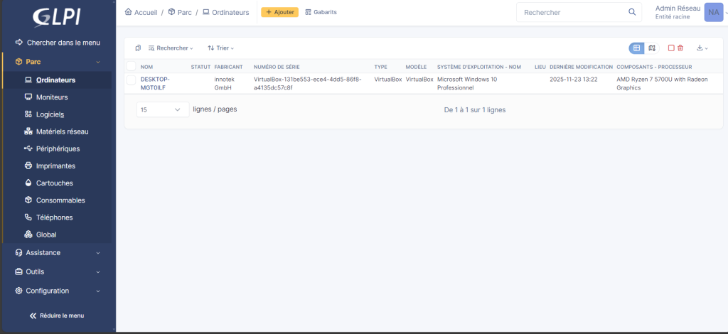 Application installée : GLPI (Gestionnaire Libre de Parc Informatique)