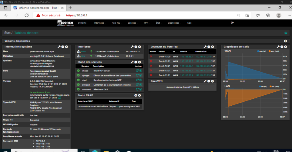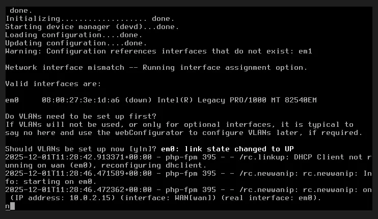 - Carte 1 (em0) : WAN - Mode NAT
